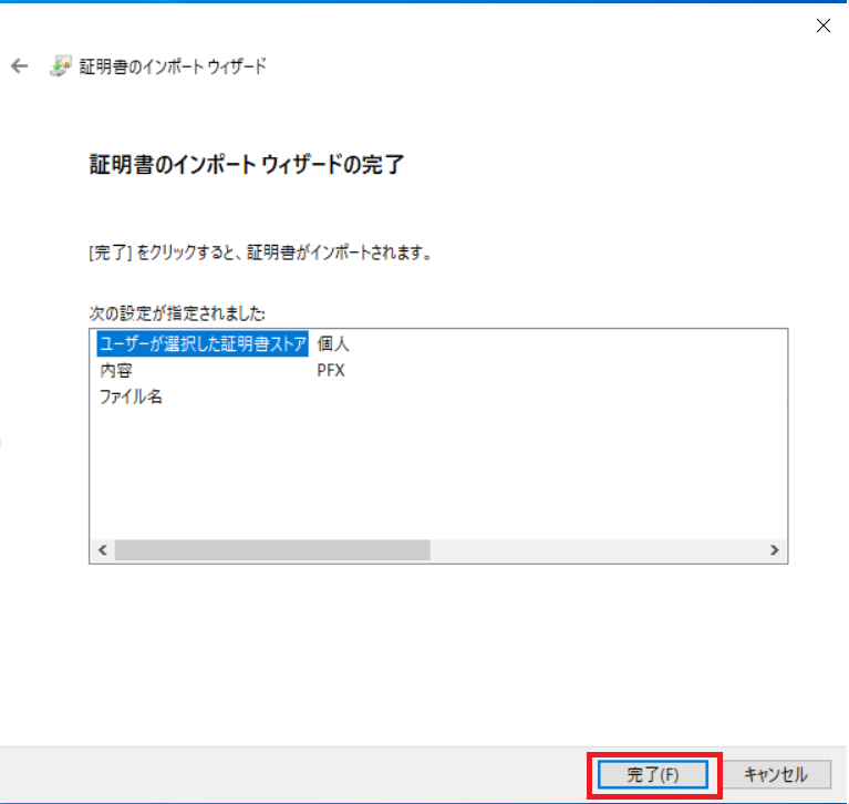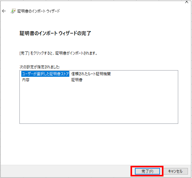 [完了]ボタンを押下します。