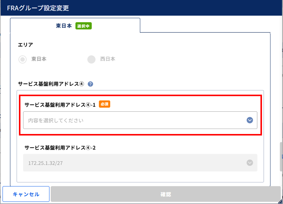 お客さまネットワーク内で未使用のIPアドレス(/27のネットワークアドレス)を選択してください。