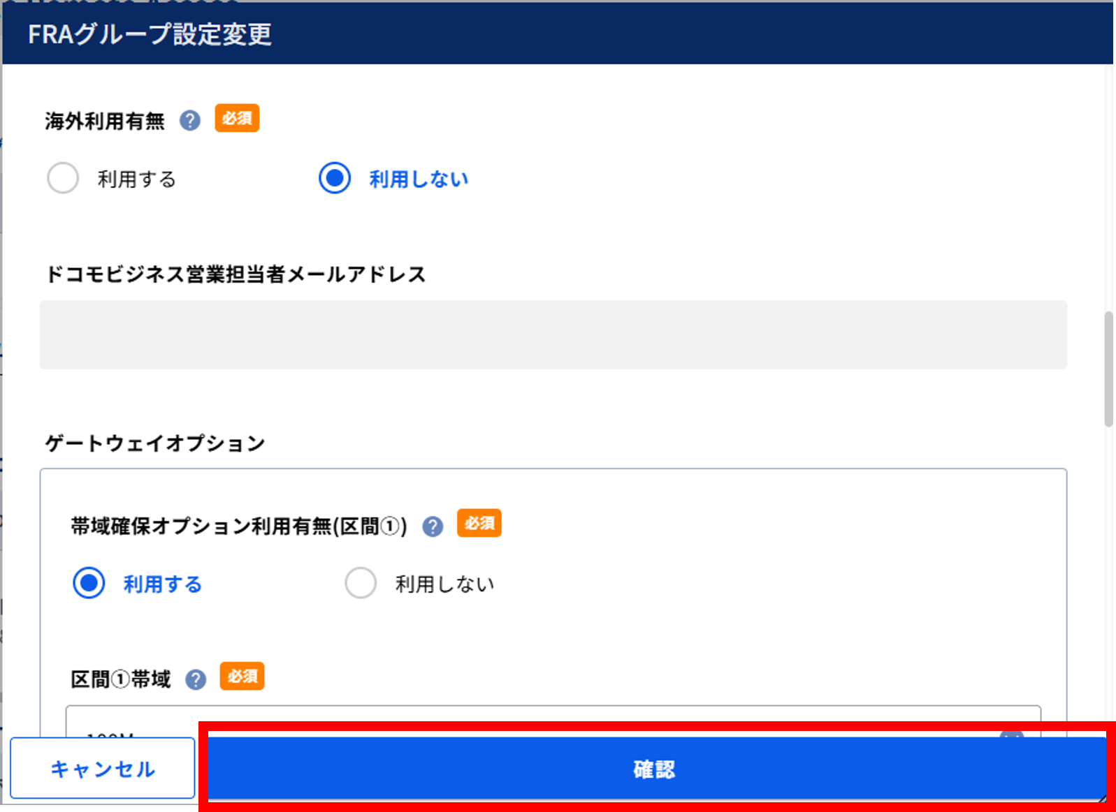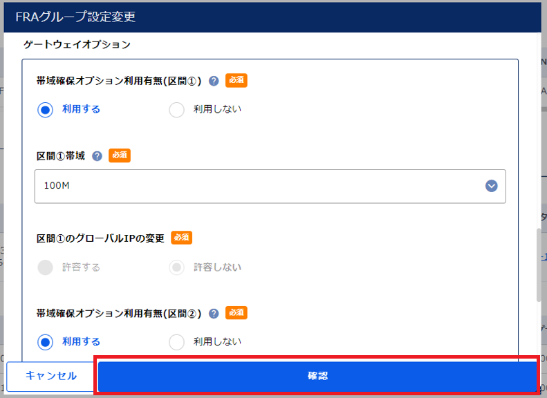 2.5.8. 帯域確保オプション(区間①)の利用有無を変更する¶