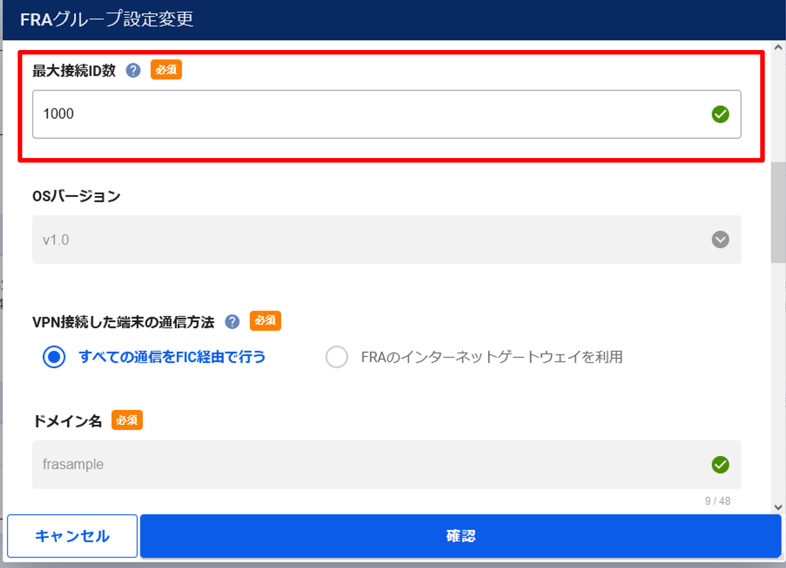FRAをご利用いただく最大接続ID数を入力してください。 |