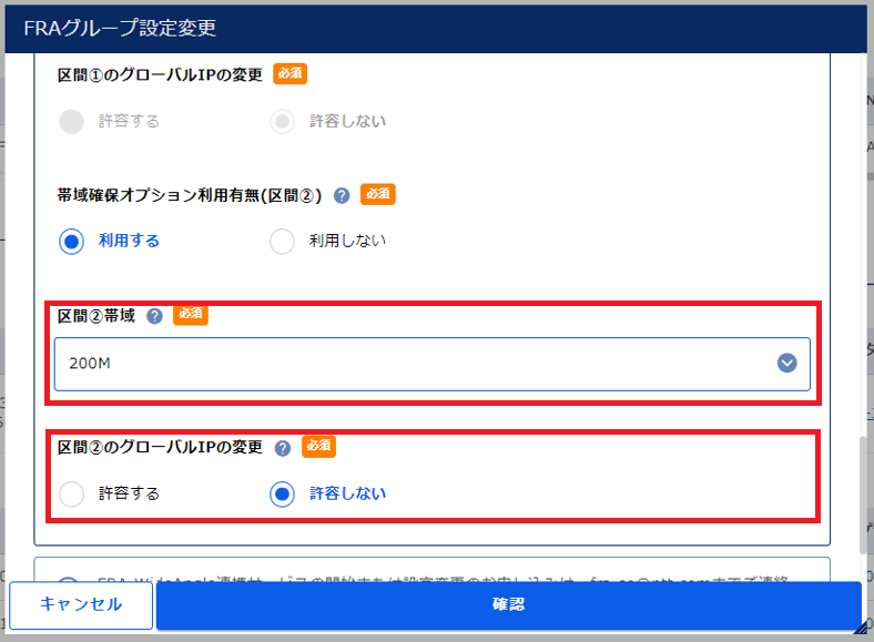 2.5.10. 帯域確保オプション(区間➁)の利用有無を変更する¶