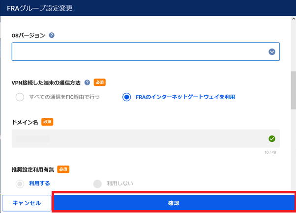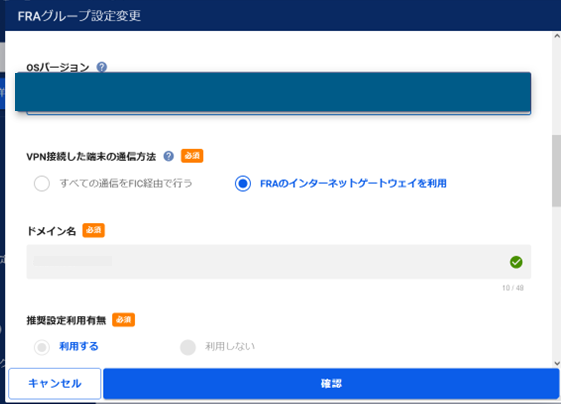 - OSバージョンアップを実行すると、FRA基盤に保存されていたログは全て削除されます。ログを削除したくない場合はOSバージョンアップ前にFRAポータルにてログをダウンロードしておくか、Syslog転送機能をご利用ください。