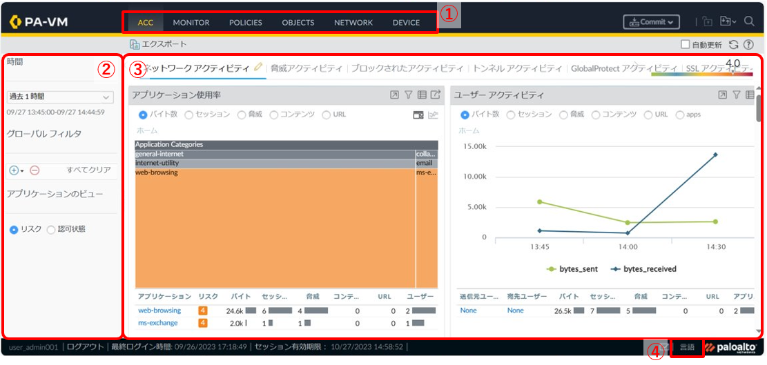 設定項目を切り替えます。選択するタブにより②の内容が変わります |