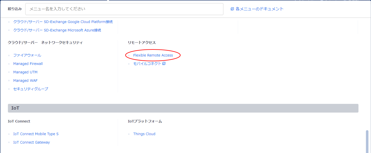 SDPFポータルメニューより、「Flexible Remote Access」を選択することでFsecコンソールへアクセスします。