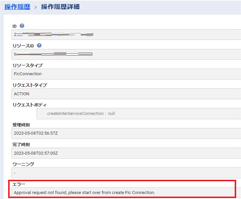 FIC-Connection作成後のシステム内の処理が完了していません |