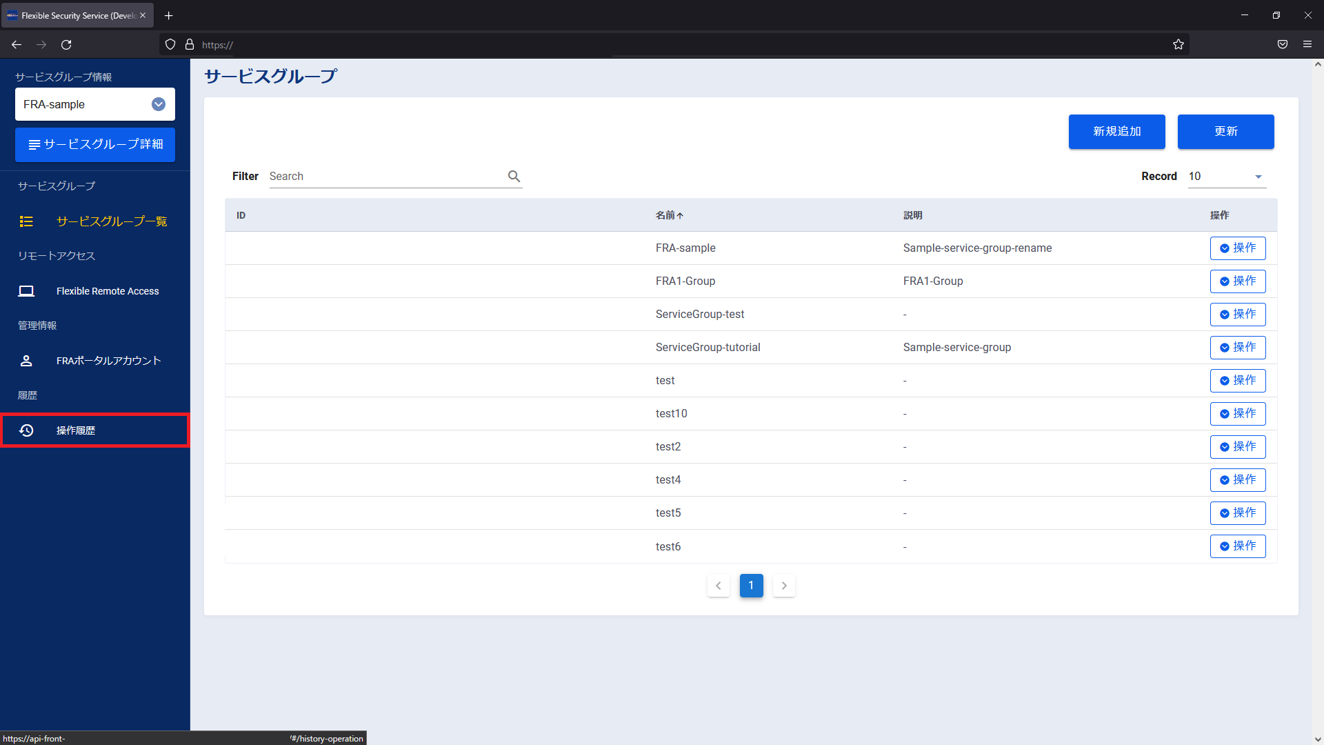 FRAポータルではFRAサービス各種機能の変更、参照画面を提供します。 0系、1系それぞれ個別に画面提供されます。