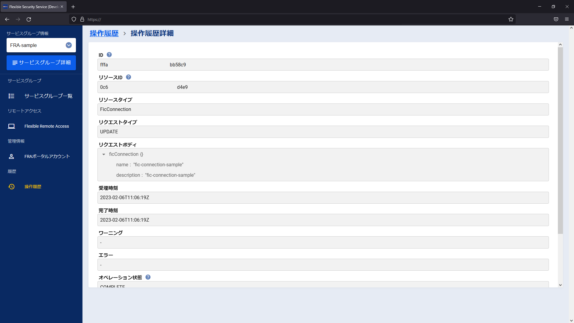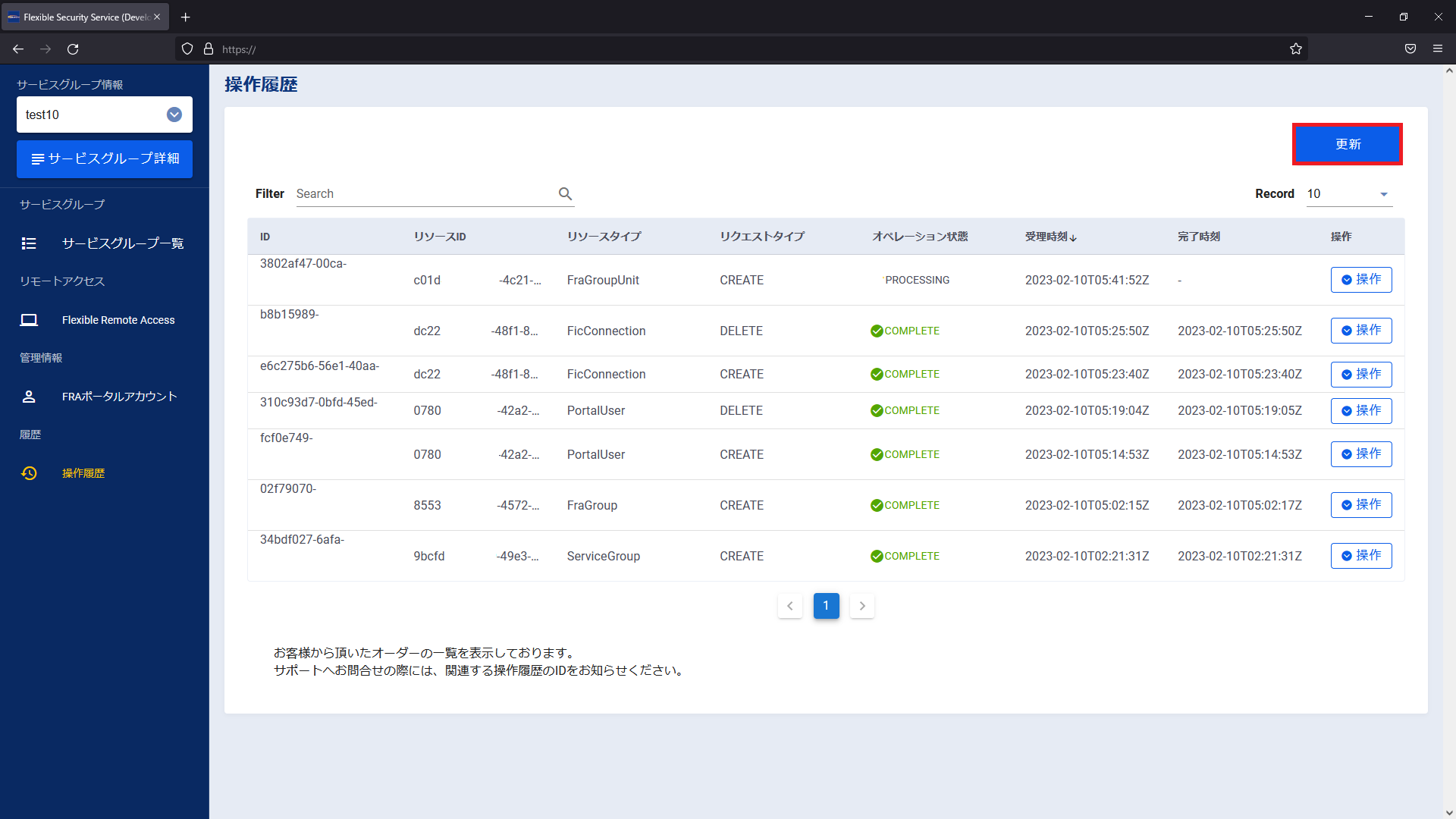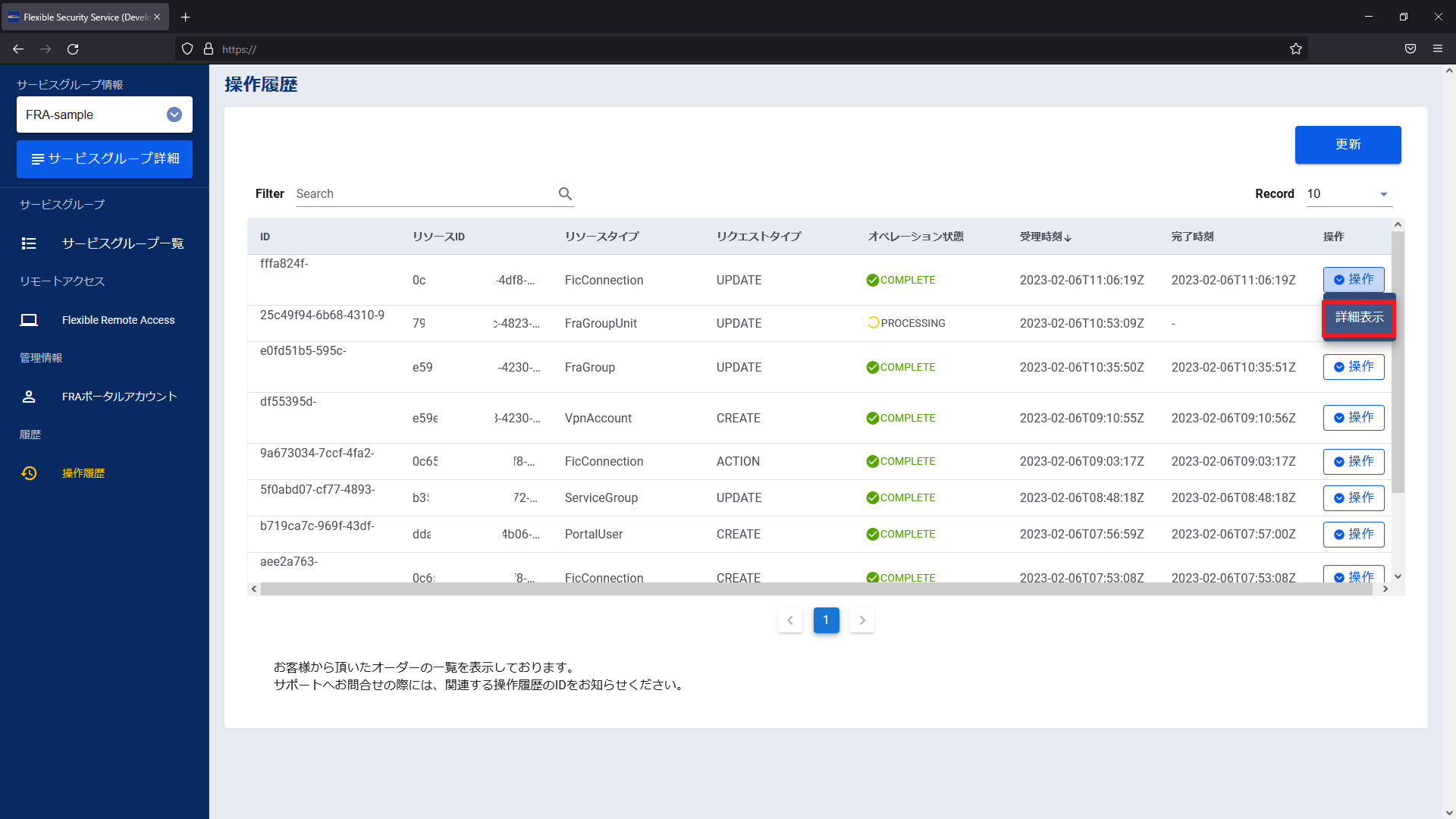 FsecコンソールではFRAサービスの各種お申し込みや、操作履歴、設定確認を表示する機能を提供します。