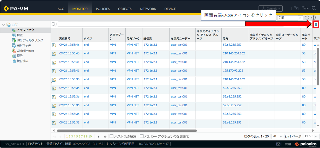 7.2.4. ログをCSVに出力する手順¶