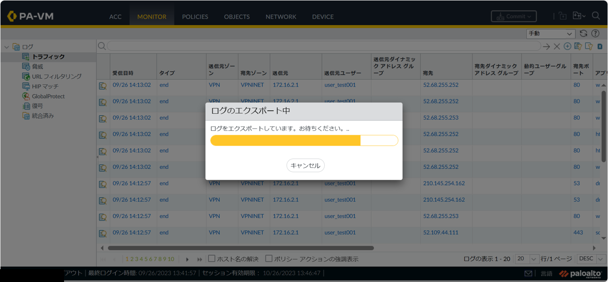 ログのエクスポートが開始されます。