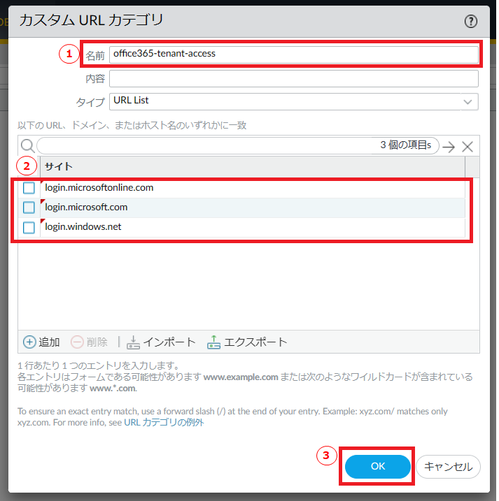 4.5.4.1. テナントアクセス制御用のURLカテゴリを作成する¶