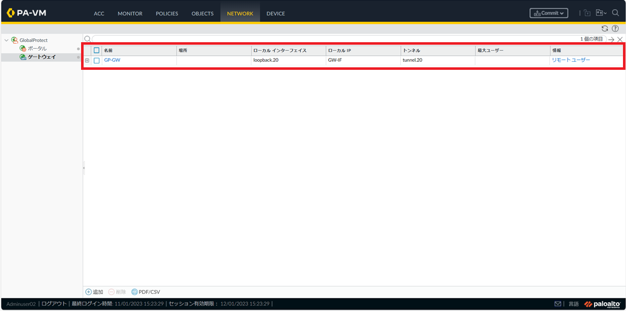 8.1.5.12. Network > GlobalProtect>ゲートウェイ> GP-GW>認証>追加(既存の設定を変更したい場合はGP-GW-auth-Localをクリック)¶