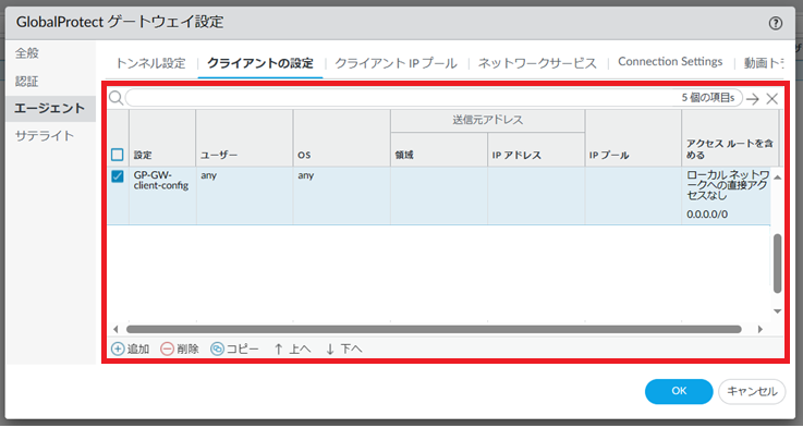 図8.1.5.14 GlobalProtectゲートウェイ設定(クライアント設定)¶