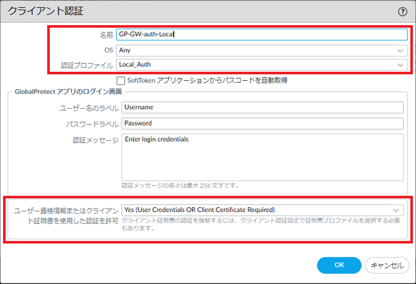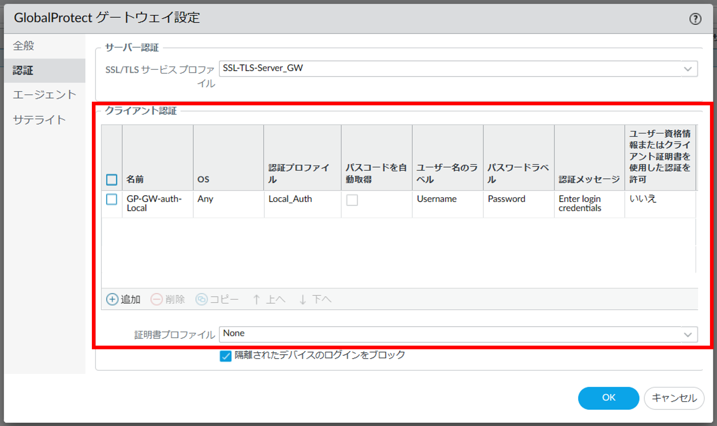 図8.1.5.12 GlobalProtectゲートウェイ設定(認証)¶