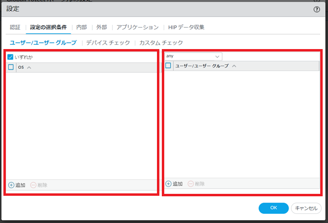 8.1.5.6. Network > GlobalProtect>ポータル> GP-portal>エージェント> 追加(既存の設定を変更したい場合はGP-client-configをクリック) >設定の選択条件¶