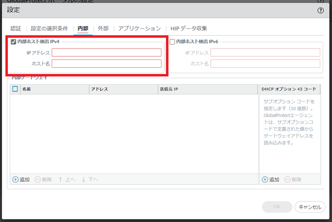 8.1.5.7. Network > GlobalProtect>ポータル> GP-portal>エージェント> 追加(既存の設定を変更したい場合はGP-client-configをクリック) >内部¶