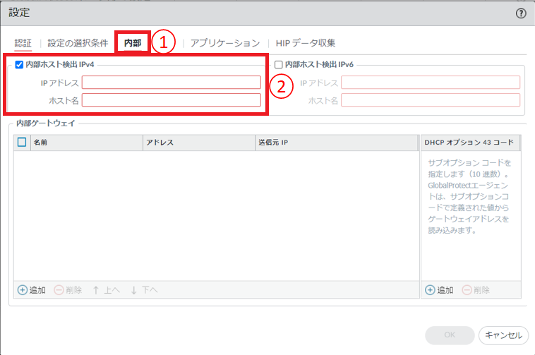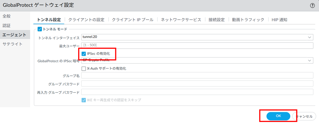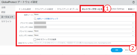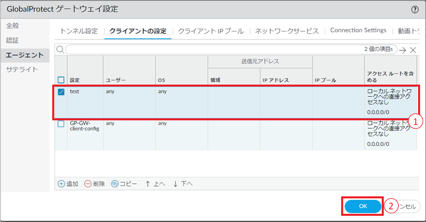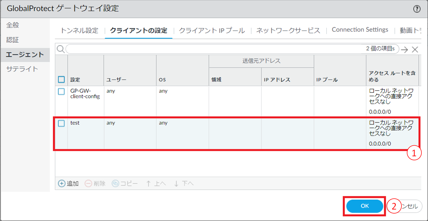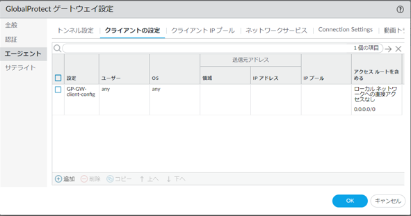 図8.6.16.3.2 GlobalProtectゲートウェイの設定(エージェント/クライアントの設定)¶