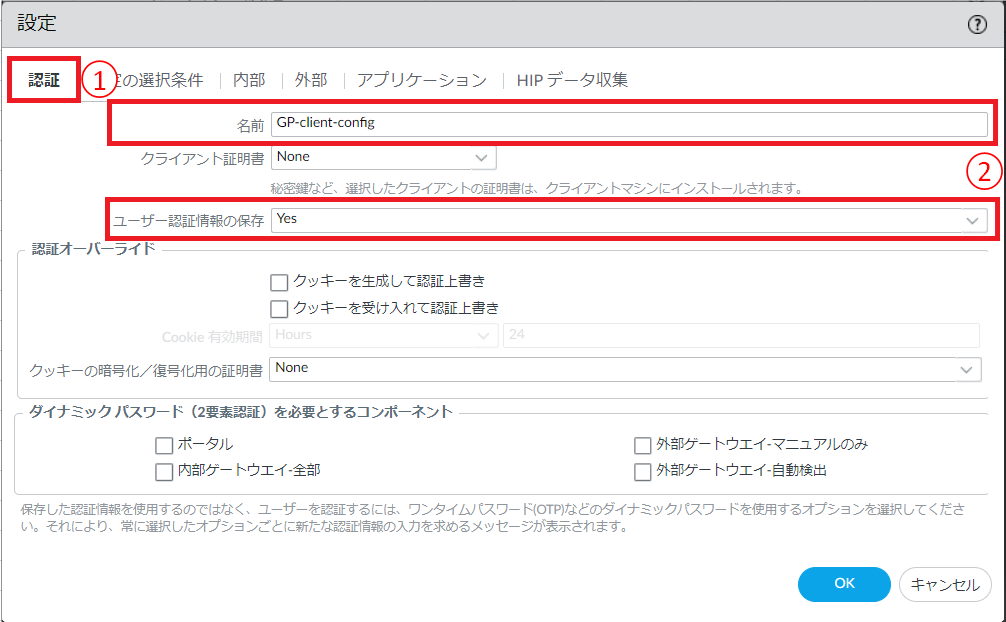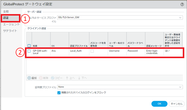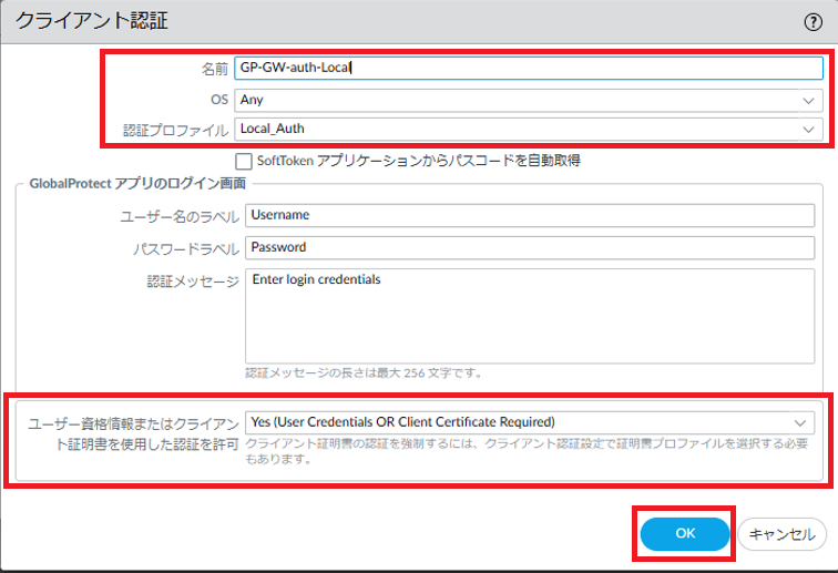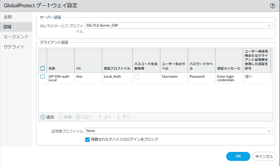- OSと認証プロファイルの設定はGlobalProtectゲートウェイ 認証の設定と同一にする必要があります。