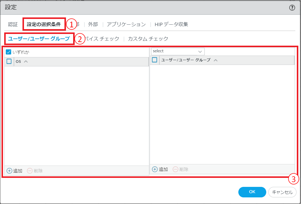 [追加]から設定を適用するOSを指定します。全てのOSを対象にする場合は[いずれか]にチェックをいれます。 |