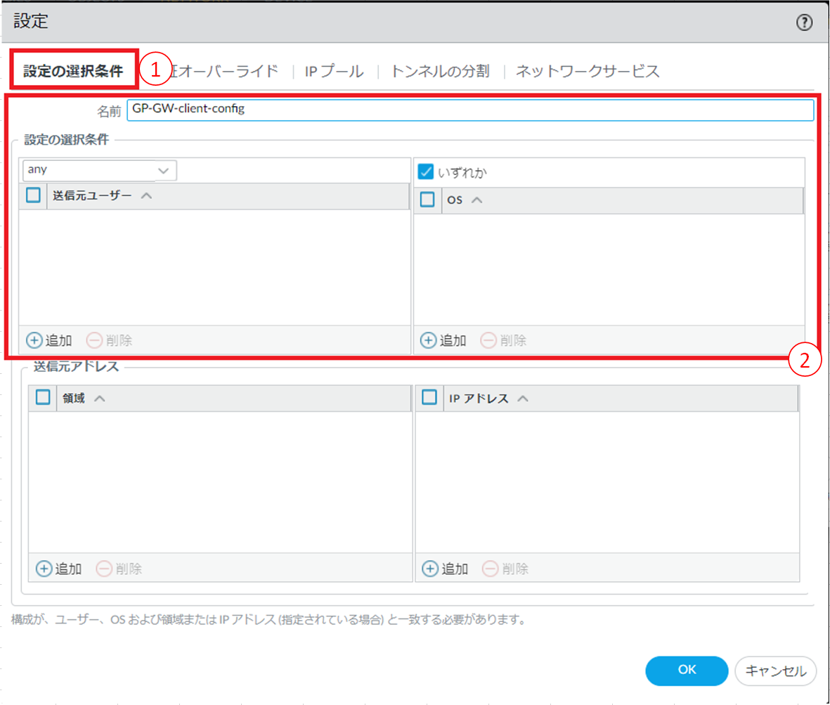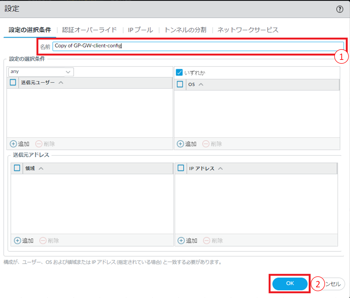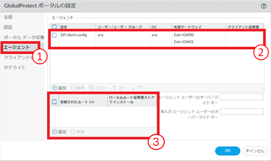 8.6.16.3. GlobalProtectゲートウェイ エージェントコンフィグの追加手順¶