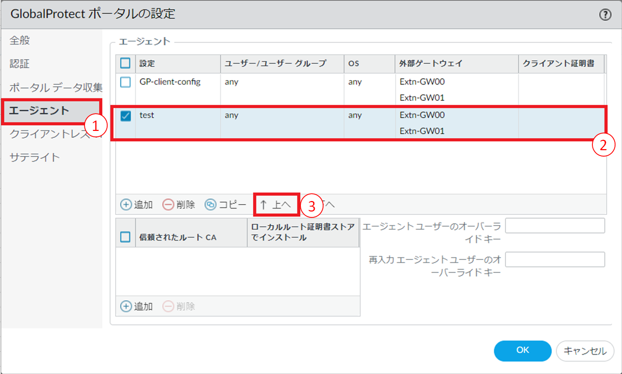 8.6.18.3. GlobalProtectゲートウェイ エージェントコンフィグの順序変更手順¶