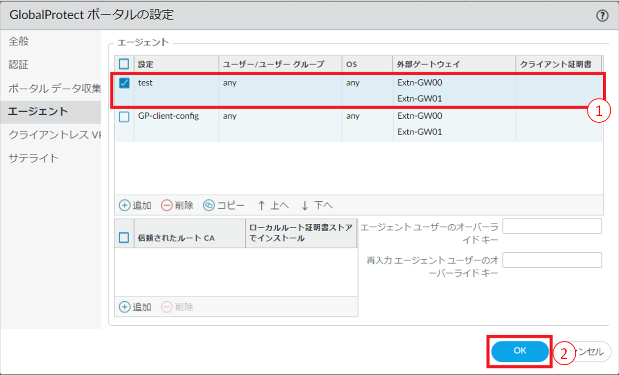図8.6.16.3.4 GlobalProtectポータルの設定(エージェント)追加後¶