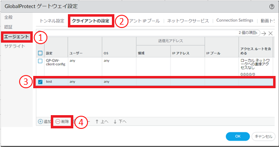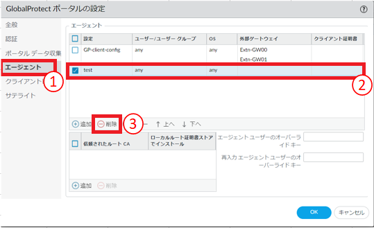 8.6.19.3. GlobalProtectゲートウェイ エージェントコンフィグの削除手順¶