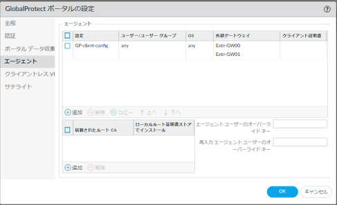 - エージェントコンフィグの変更をしたい場合は 8.6.9. GlobalProtectポータル エージェントコンフィグの変更をする を参照してください。