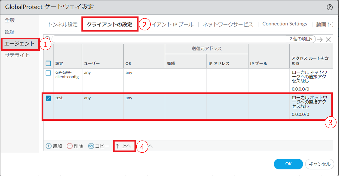 8.6.18. GlobalProtectゲートウェイ エージェントコンフィグの順序変更をする¶