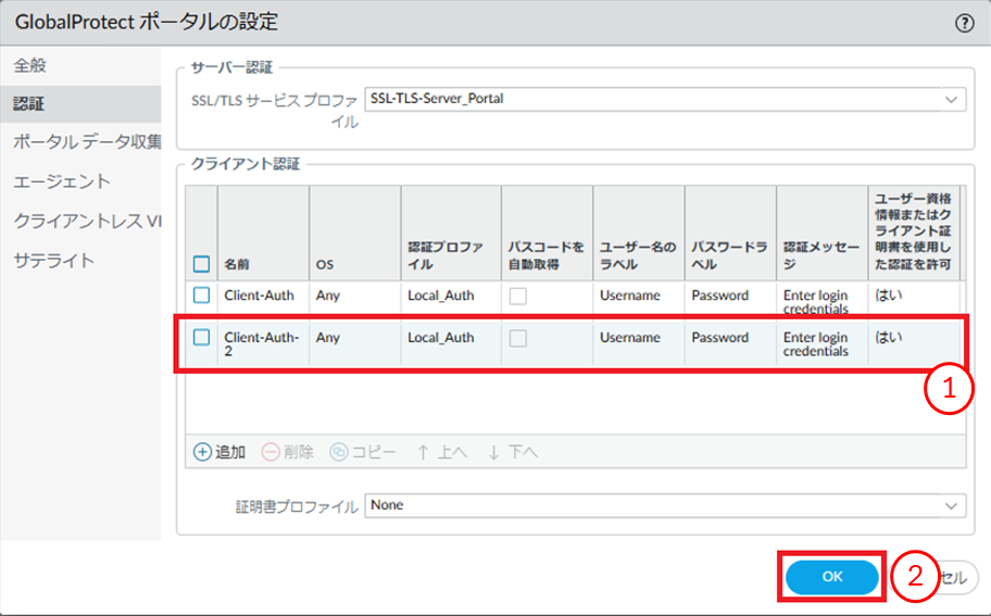8.6.4. GlobalProtectポータル 認証の追加をする¶
