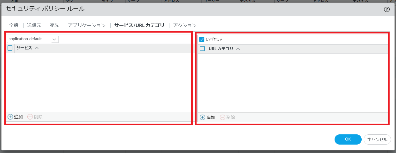 図8.4.4.3.6. セキュリティポリシールール(サービス/URLカテゴリ)¶