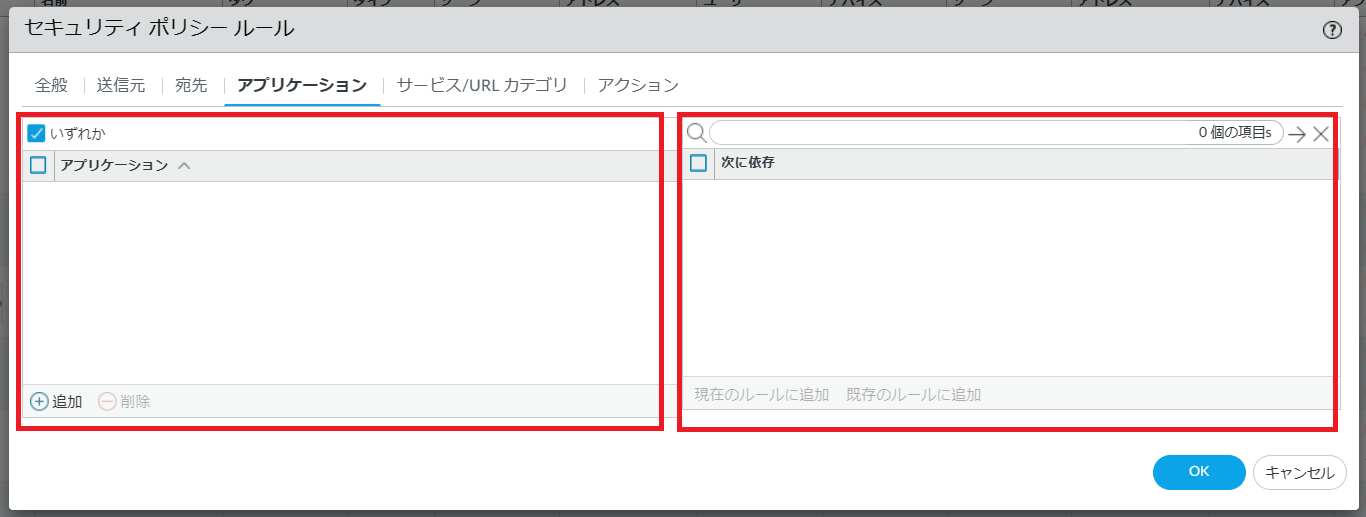 - アプリケーションの依存関係は アプリケーション依存とは を参照してください。Paloalto社のWebサイトに移動します。