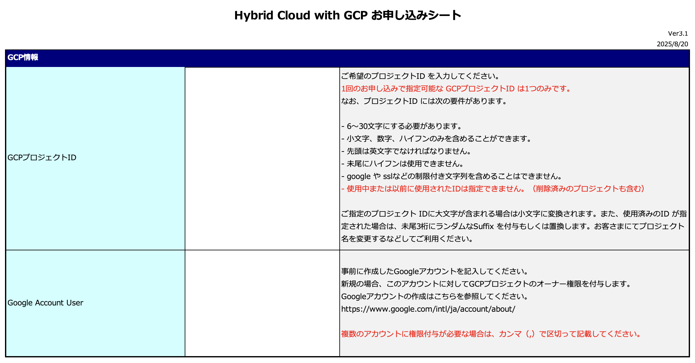 プロジェクトIDの要件は、申込ファイルの備考欄をご確認ください。