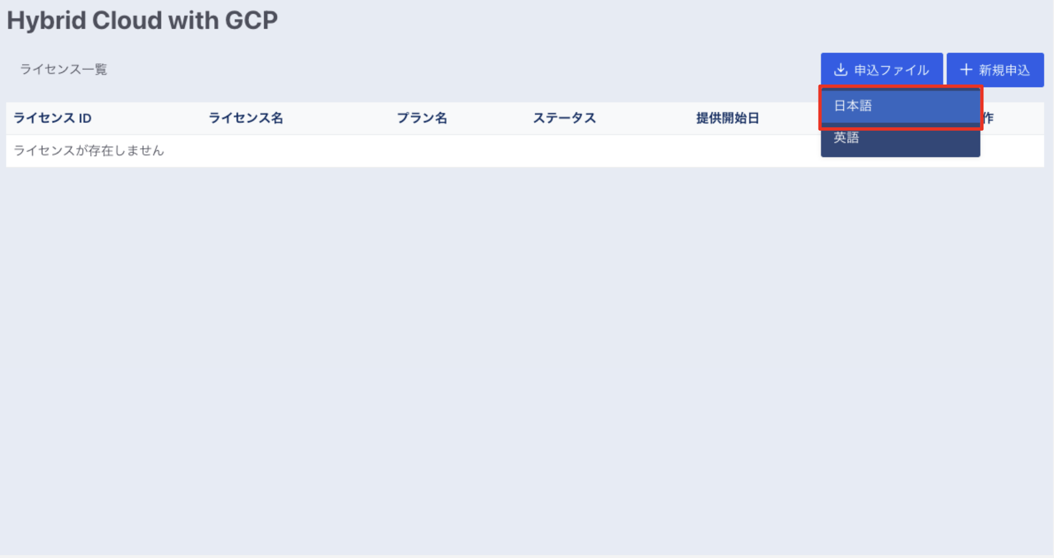 プルダウンから「Hybrid Cloud with GCP」を選択してください。 |