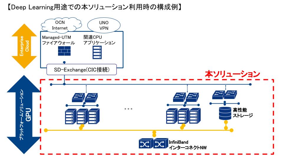 GPU搭載サーバー間をDC内ネットワークとは独立した高速インターコネクト(Infiniband/Ethernet)にて接続いたします。 |