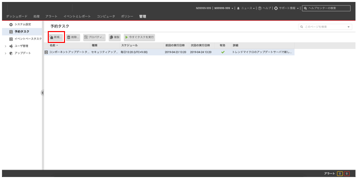 - 各タスクの操作メニューから『新規』をクリックして、タスク作成ウイザードを表示します。