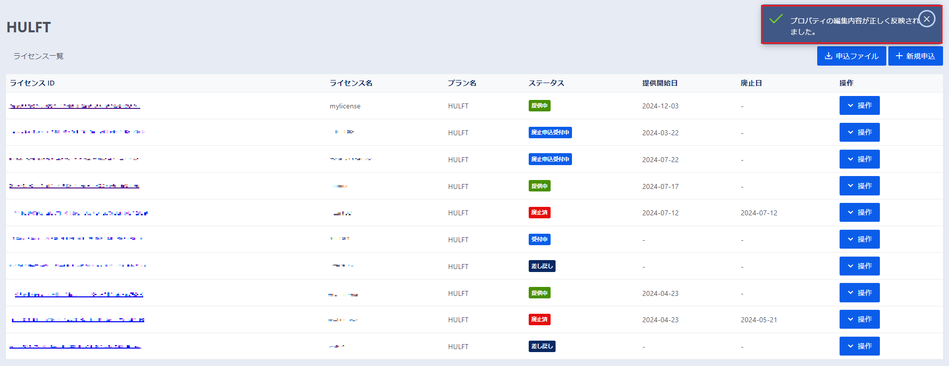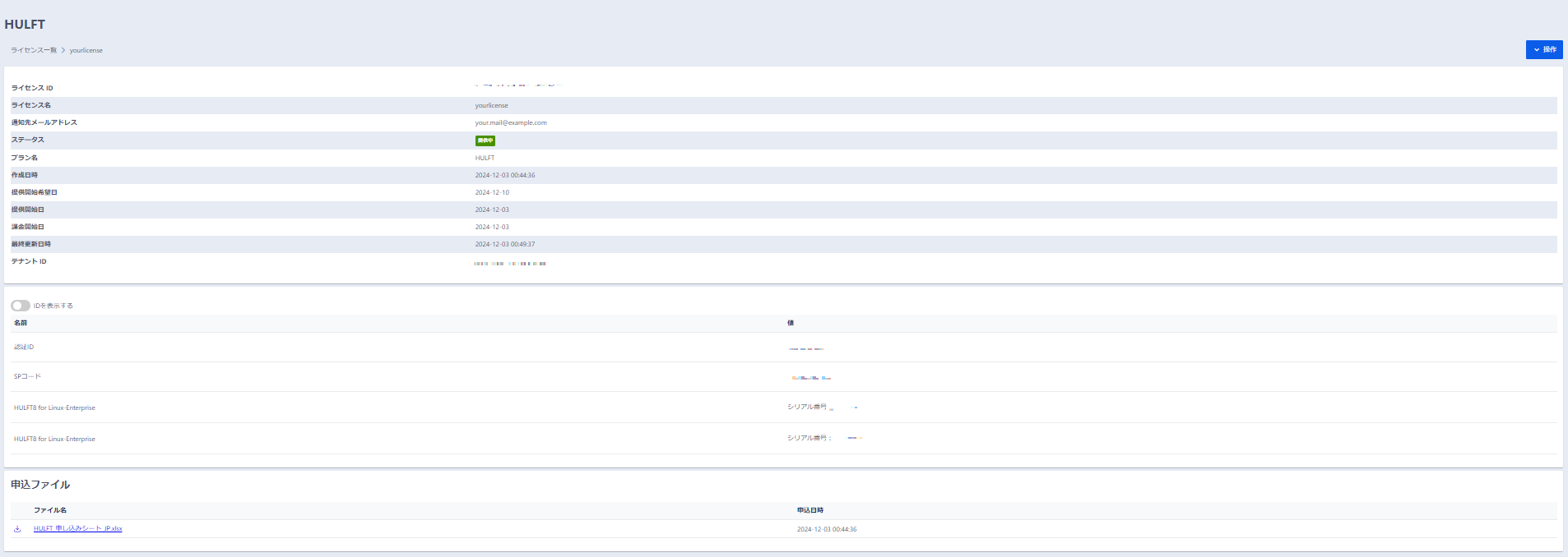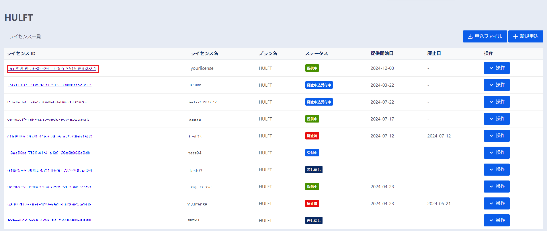 「ライセンスID」に紐づいた申し込み情報を参照できます。