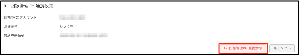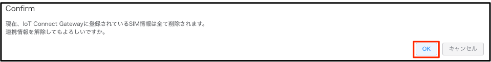 連携解除を行うと、IoT Connect Gatewayに登録されているControlCenterのSIM情報が全て削除されます。
