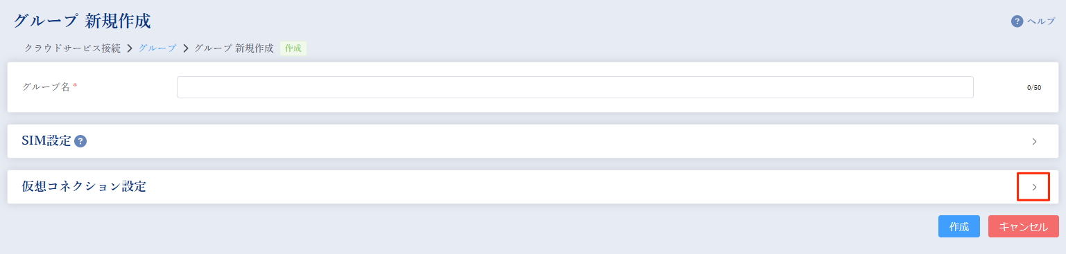 グループ名を設定し、「作成」ボタンを押すと、グループが作成され、同時に 仮想コネクション もグループに割り当てられます。