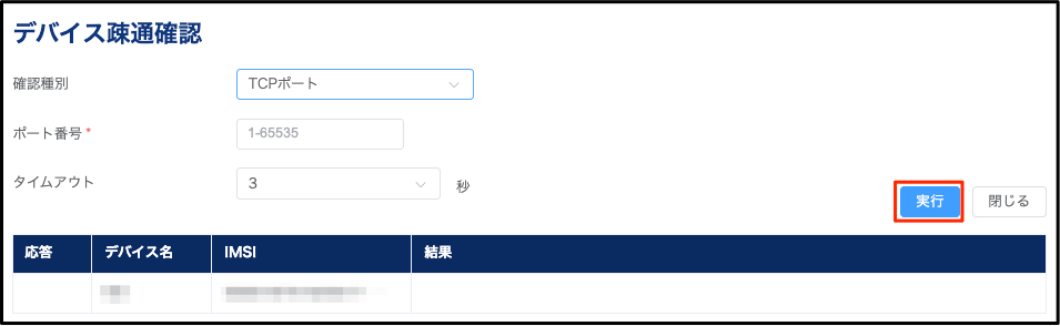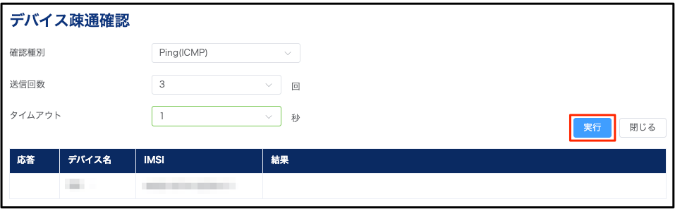 デバイス疎通確認機能を利用する場合は、SIMが挿入されている機器のping応答設定(ICMPエコーリクエスト)、対象TCPポートを許可にしてご利用ください。