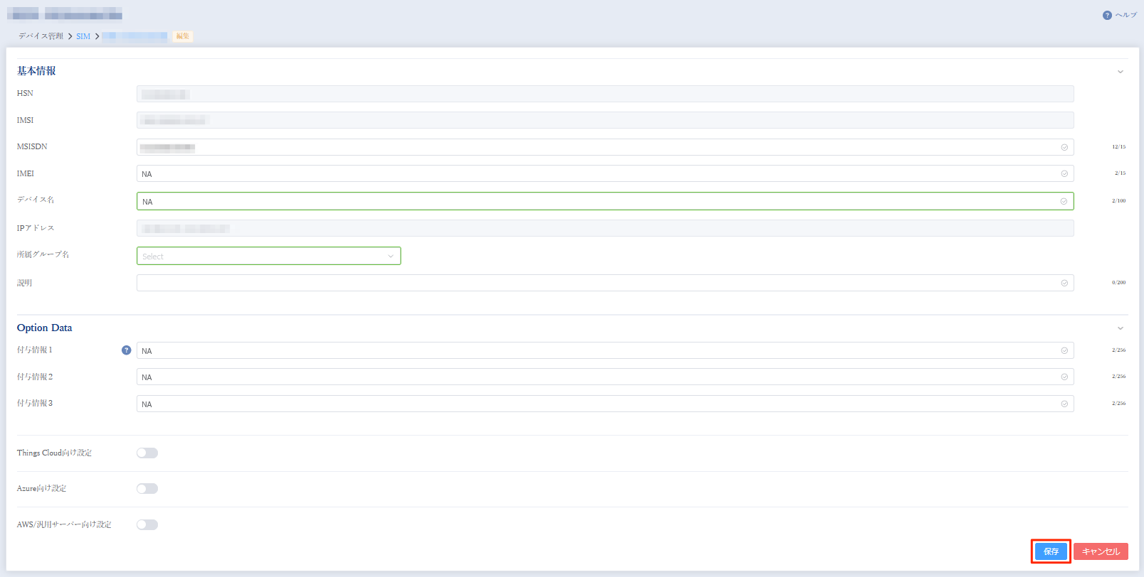 SIM情報のメンテナンス(IoT Connect Mobile® Type S)¶