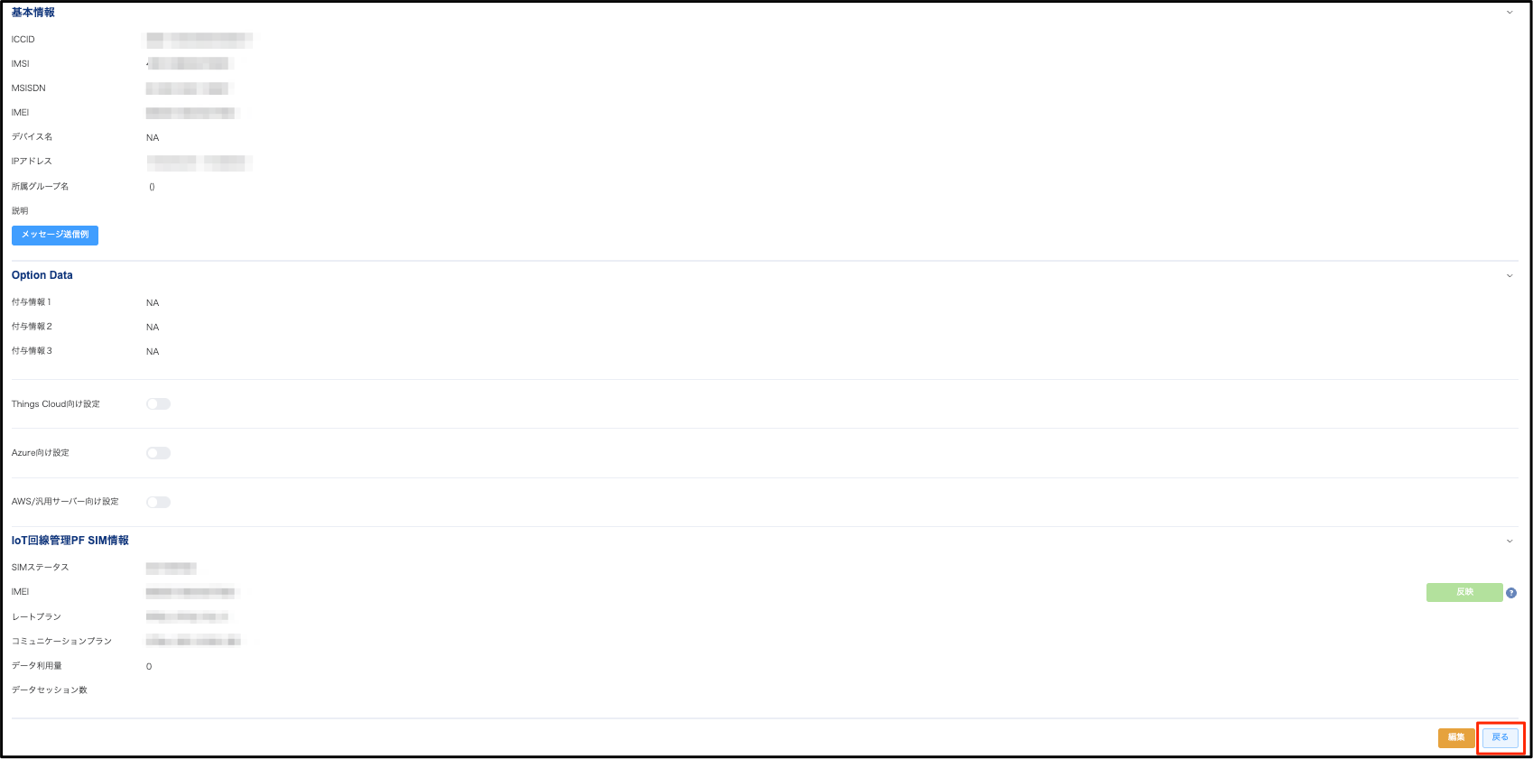SIM連携後、SIM一覧画面にはIMEIが反映されませんので、「詳細」からIMEIを反映します。