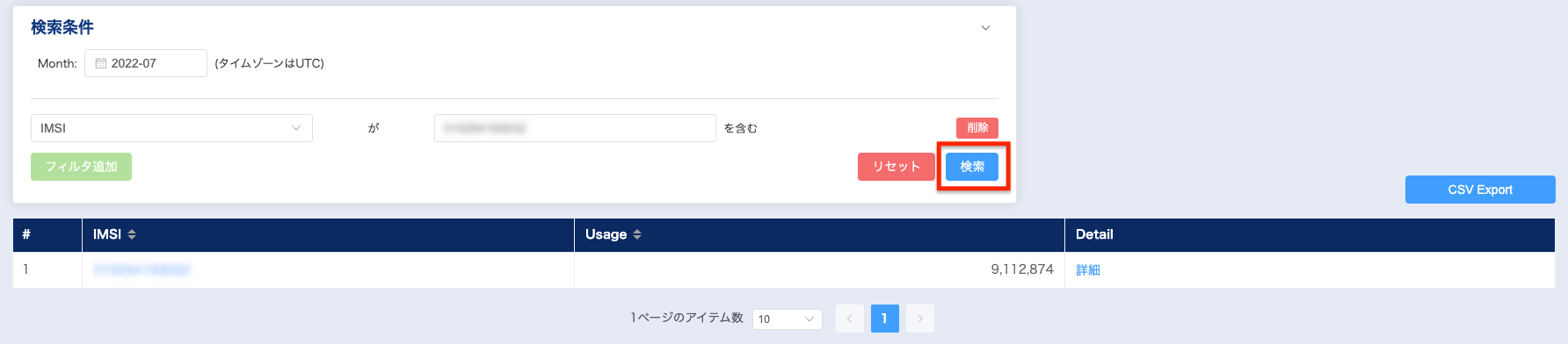 日付、フィルター条件を任意で指定し、「検索」ボタンを押すと、絞り込みが実行されます。