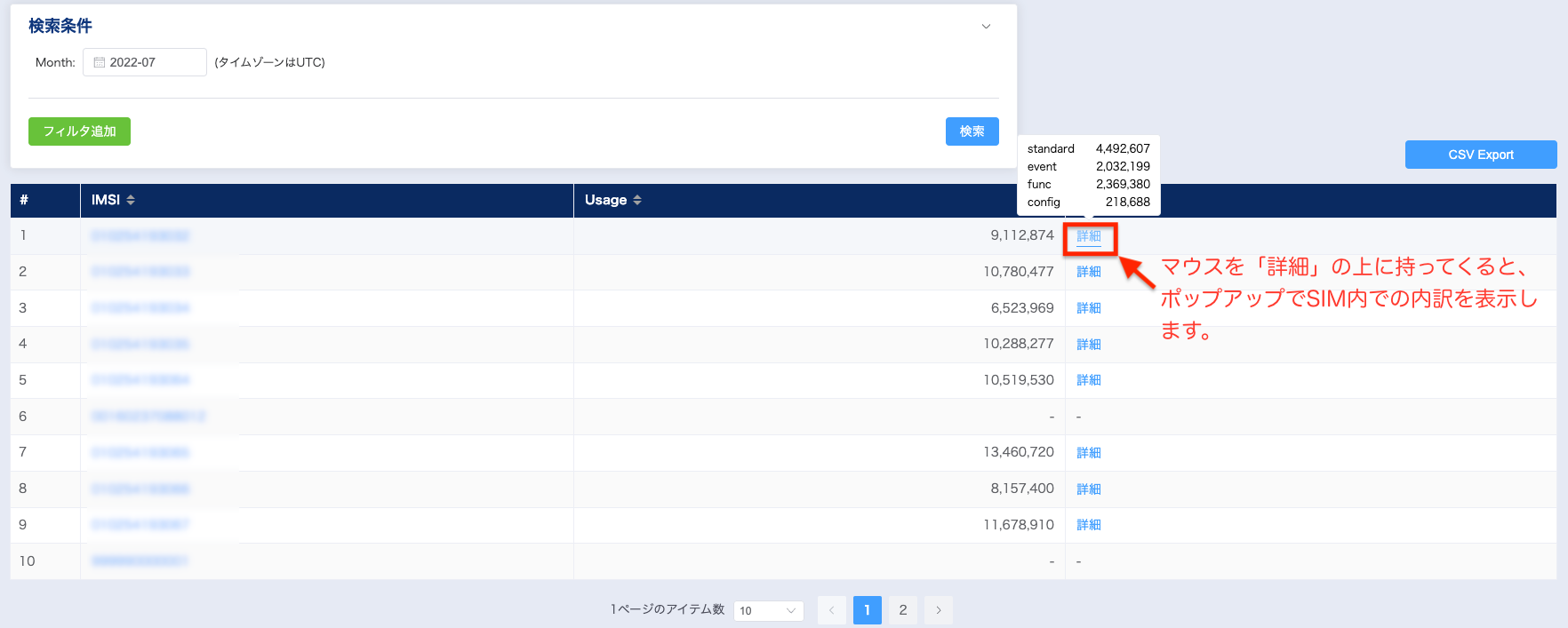 リストの「詳細」にマウスを持っていくと、内訳をポップアップ表示します。