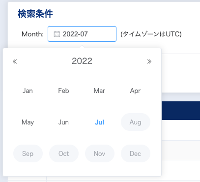 日付はカレンダーにて指定します。月単位での絞り込みとなります。