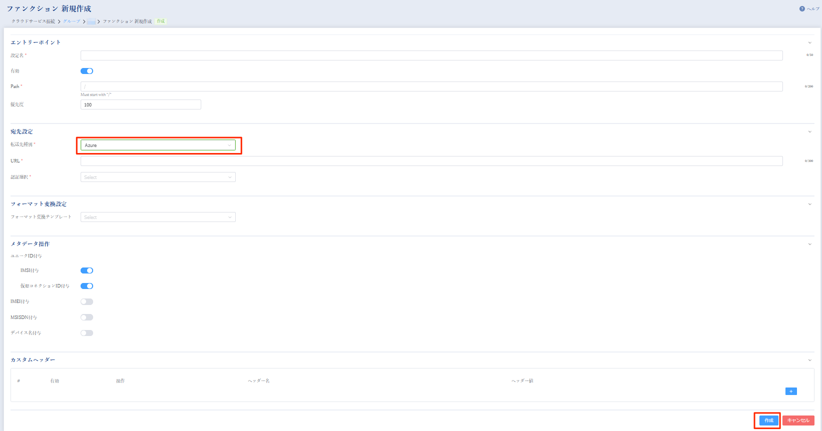 ご利用になる 「Azure Functions」 関数のURLを指定します。詳細については、Azure Functionsのヘルプ を参照ください。
