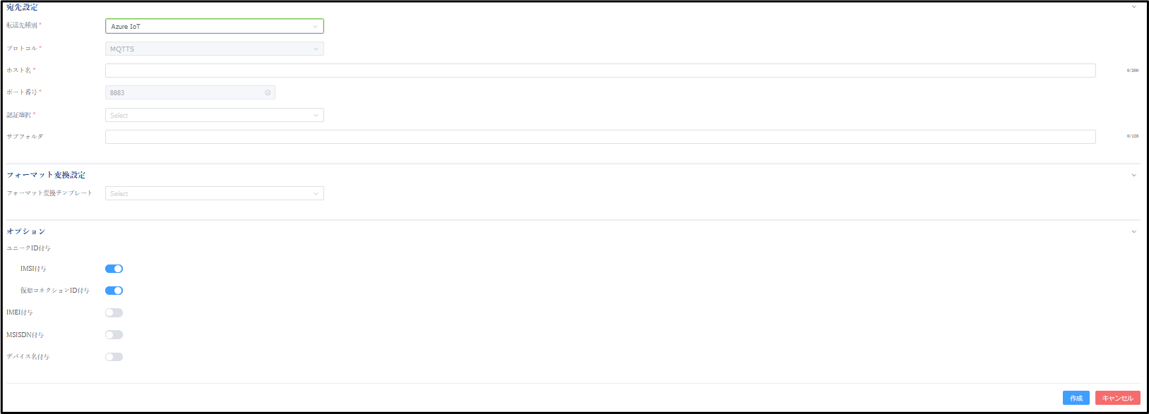 こちら で設定した認証から選択します。「Azure IoT Hub 認証」 のみからの選択となります(必須)
