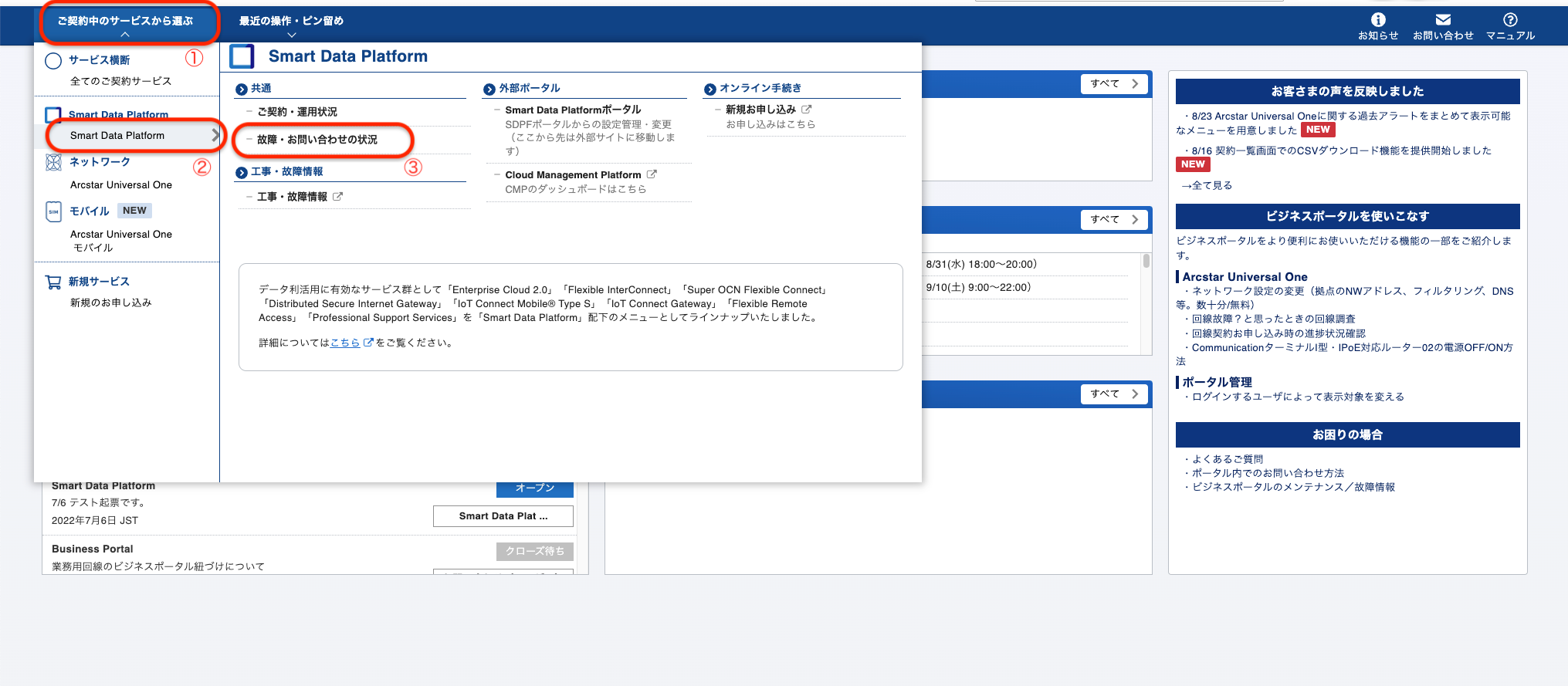 ビジネスポータルにログインし、