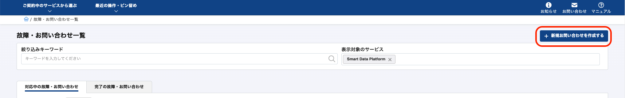 「新規お問い合わせを作成する」をクリックします。