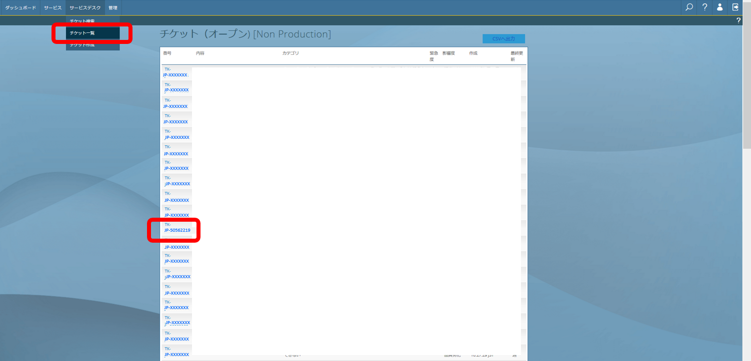 チケット番号をクリックします。