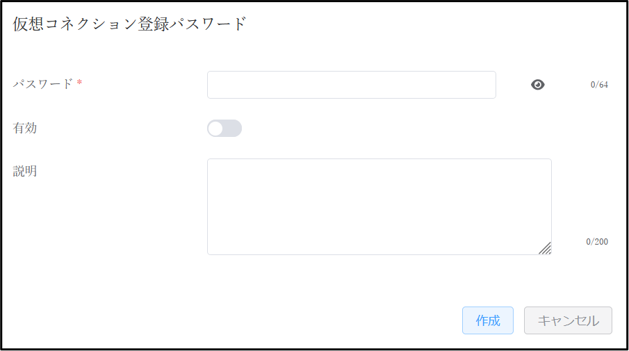 トグルをONにすると設定した仮想コネクション登録パスワードが有効になります。OFFにすると無効になります。